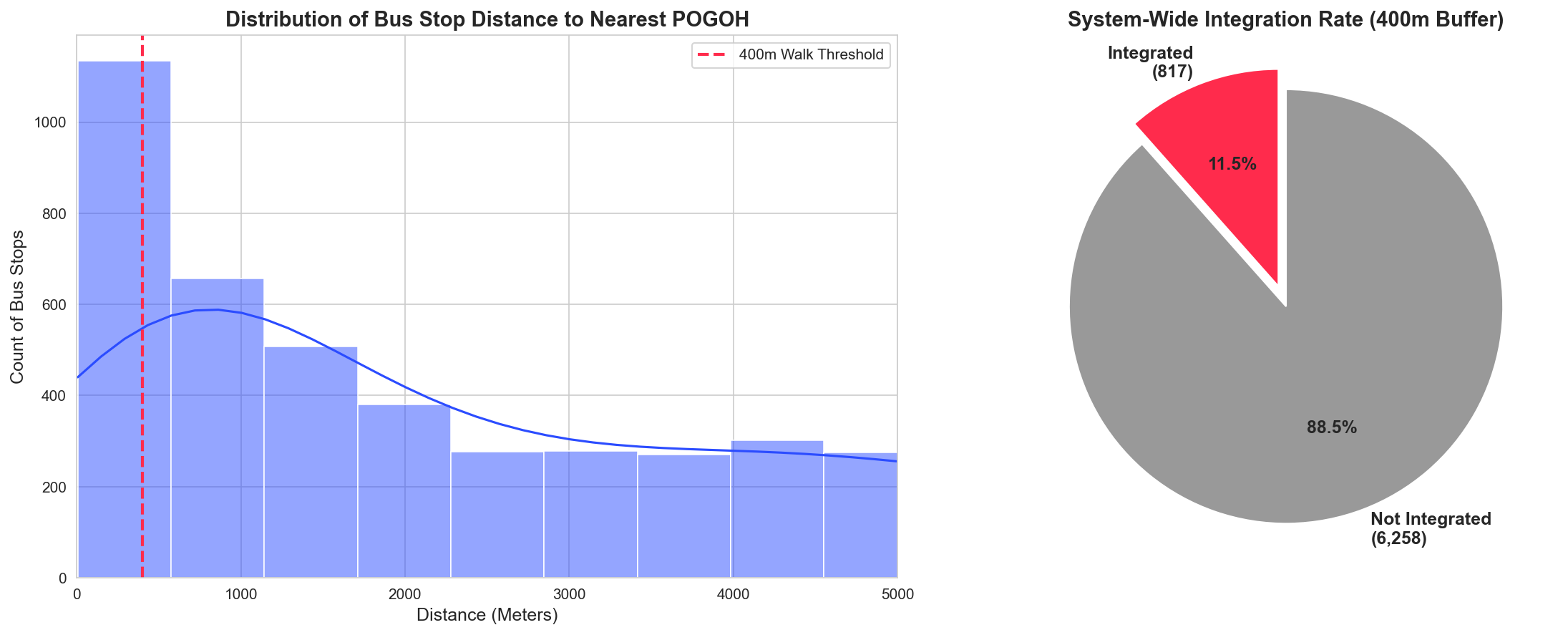 - System Insight: While only 11.5% of the total bus network is within walking distance of POGOH, these stops account for a disproportionate share of transit volume. This highlights the strategic placement of current bike stations near high-frequency transit corridors.